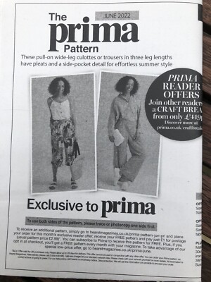 Prima Sewing Pattern Wide Leg Culottes Or Trousers In Three Lengths Sizes 6 24 2 49 Picclick Uk